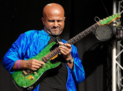 I have not heard much of that before, but Bija (the meaning of the word you can see here) played at the Mela Festival last sunday. Two clever guitarists (Amit Heri and Sanjay Divecha), and bass and drums. It sounded nice, perhaps not very indian in the start, but after some time the complex and intricate rhythmic figures, known from classic indian music, came.