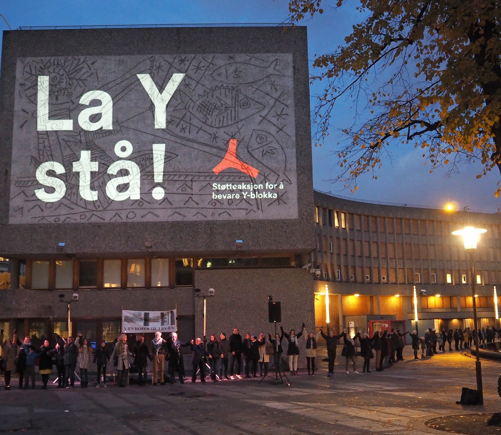 og i dag var det markering ved Y-blokka, flotte appeller og fin musikk, ved Lars Lillo Stenberg og Mariann Thomassen (fra Surferosa)og ikke minst slo vi ring om Y-blokka, tegnet av arkitekt Erling Viksjø med kanskje verdens største Picassobilde (som Pablo Picasso lagde sammen med Carl Nesjar)