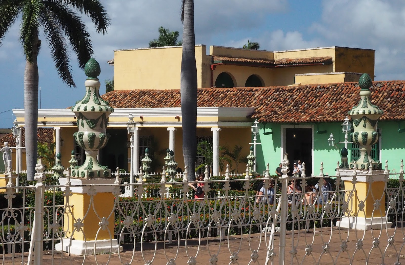 er en liten (ca 75 000 innbyggere) og koselig by, med en bykjerne preget av kolonialstil fra den tiden sukkerproduksjonen var på topp. Og med gater og bygninger på Unescos verdensarvliste. Men kan være krevende å gå (og sykkeldrosjene kjører ikke her i sentrum av åpenbare grunner)Cuba dyrker kaffe selv (husk handelsboikotten), og den er god, særlig espressoen, syns jeg. Og det blir kunst av det. Guiden vår, Luis, forklarte noe med det, hva fikk jeg ikke med megikke bare gamle amerikanske biler, også engelske(dette er vel en Austin?)